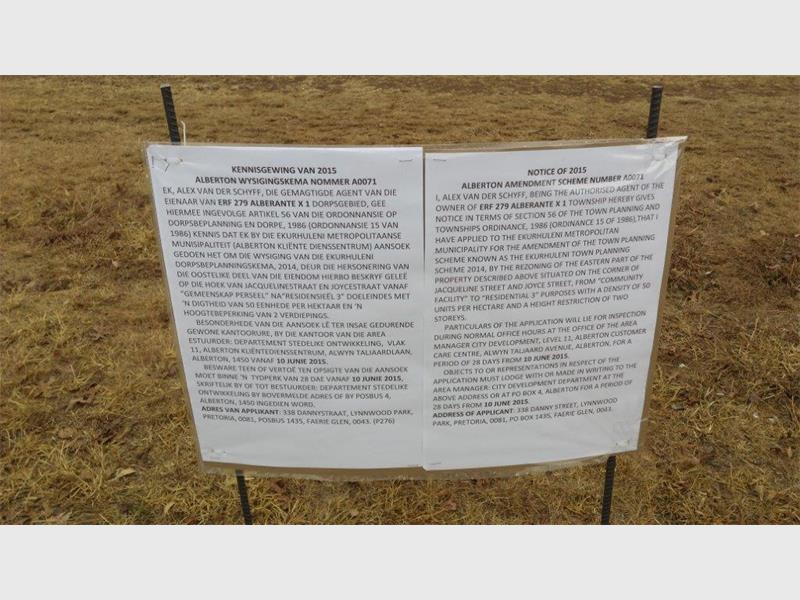 Residents who want to comment or send complaints regarding this proposed development, must do so in writing, within 28 days, from June 10 to: The Area Manager City Development, Level 12, Alberton Customer Care Centre, Alwyn Taljaard Avenue, Alberton or The Area Manager City Development, PO Box 4, Alberton, 1450.