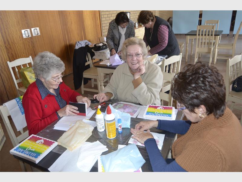 Dames van verskeie takke het heel oggend gesellig saam gekuier terwyl hulle aan hul spog skeppings gewerk het.