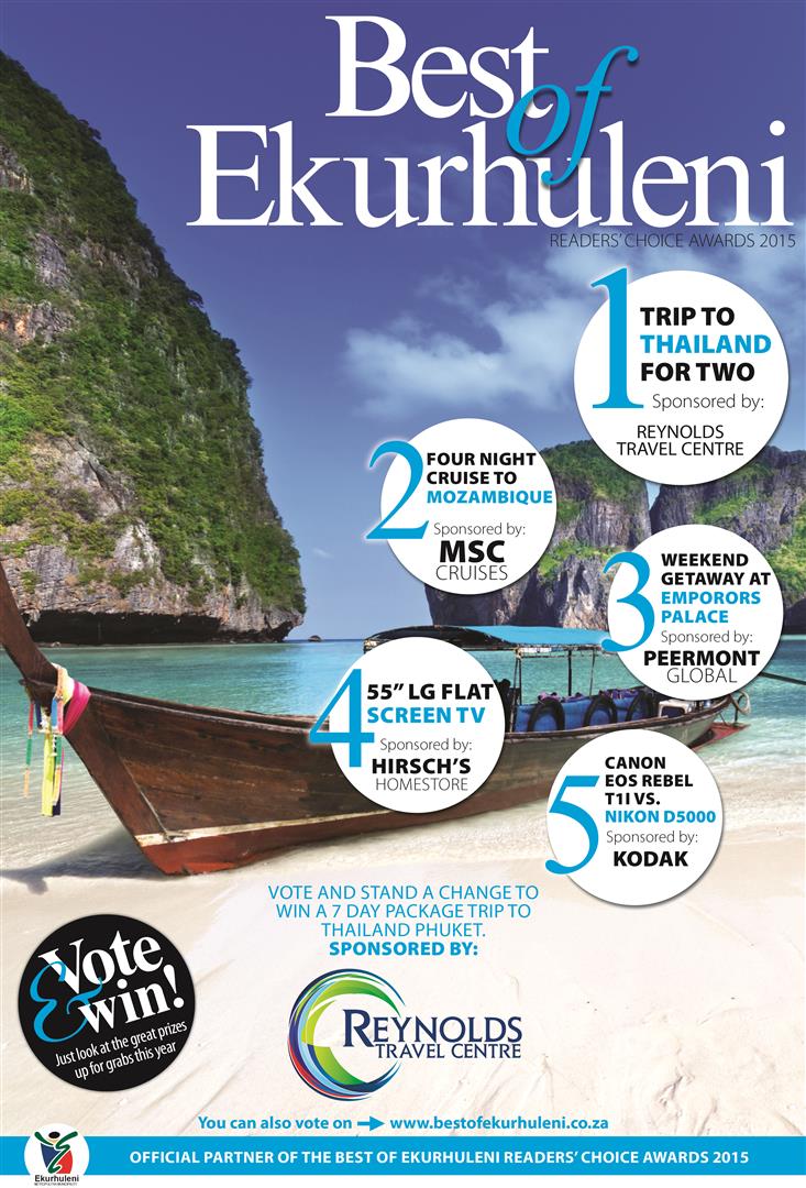 There are five categories (Lifestyle in Ekurhuleni, Living in Ekurhuleni, Dining out, Glam it up and Eat, drink and be merry) where members of the public can cast their vote and stand a chance of winning amazing prizes.