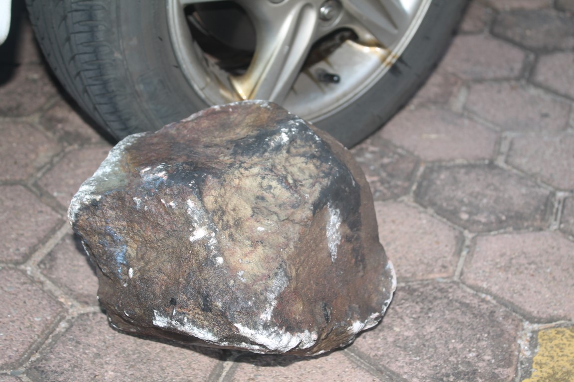 “It is clear that this rock must have been used on several occasions as it is spilled with motor oil and have several ‘crash’ marks to it.”