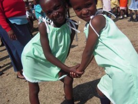 Two pensioners, Aileen Johnston and Pikkie Van der Westhuisen blessed the children from the Lerato Educational centre with stunning summer dresses they made themselves.