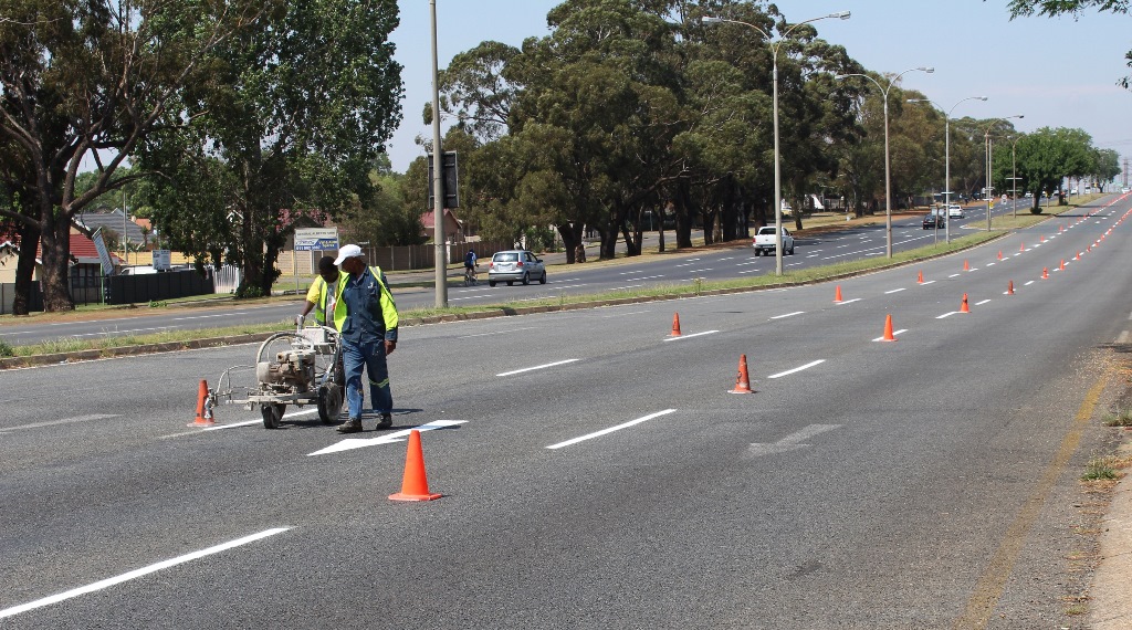One lane on Swartkoppies road has been cordoned off as the street markings are being repainted.