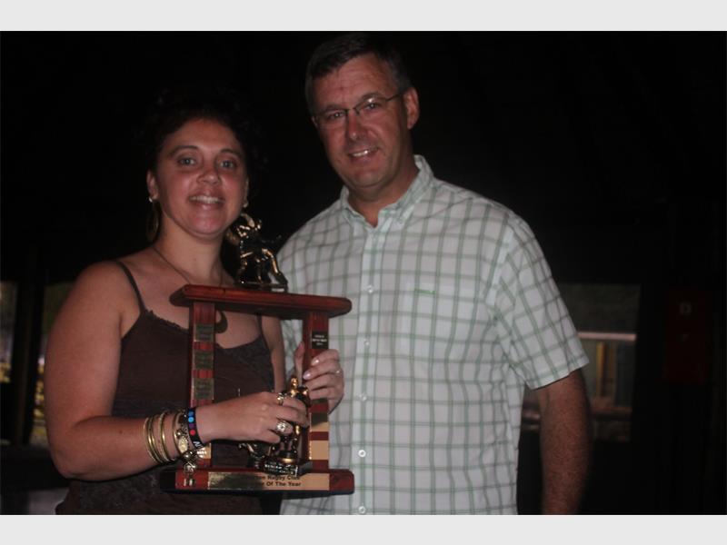 Tanya Ulgheri speel ‘n onmisbare rol as A-Square-Forklift Alberton Rugbyklub se verteenwoordiger in die strukture van Goue Leeus vrouerugby. Sy is ook die beste spanbestuurder by A-Square-Forklift Alberton Rugbyklub en is onlangs vereer as spanbestuurder van die jaar. Andy Turner het die toekenning aan Tanya oorhandig. Voorwaar nog ‘n vrou van die jaar wat haar plek deeglik volstaan.
