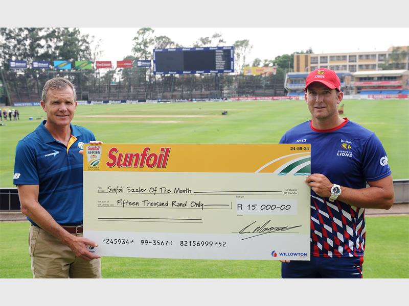 Hardus Viljoen of the bizhub Highveld Lions has bagged the Sunfoil Series Sizzler award.