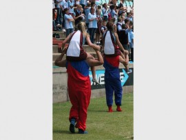 VET PRET: Die pom-pom dansgroep van Hoërskool Alberton het die toeskouers omtrent met hulle danse vermaak en op hulle voete gehad.