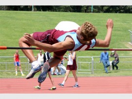 DWAYNE MIK HOOG: Dwayne Swart van Hoërskool Alberton het baie goed by die hoogspring-punt gevaar.