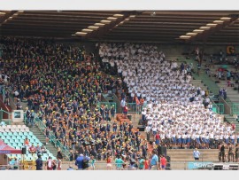 GEESVANG IS LEKKER: Sanggroepe van die vier hoërskole tydens die byeenkoms.