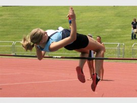 ASHLEIGH SPRING HOOG: Ashleigh Graddon van Alberton High het 1.4m hoog gespring tydens die atletiekbyeenkoms by die Herman Immelman Stadion.
