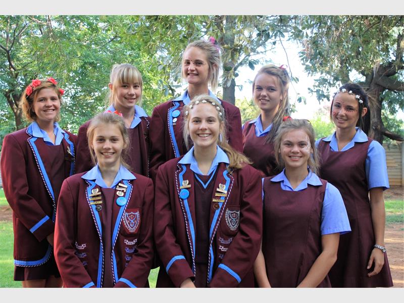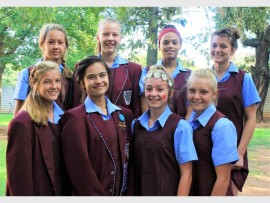 MEDALJEWENNERS: Hier is nog medaljewenners van Hoërskool Alberton se prestige atletiekbyeenkoms. Voor: Zandri Basson (twee medaljes), Janey Janse van Rensburg en Biance Theron. Agter: Nelize van Schalkwyk (twee medaljes), Shimoreze Smit, Leoni van Sittert, Bronwin Thomas en Chante Nepgen.