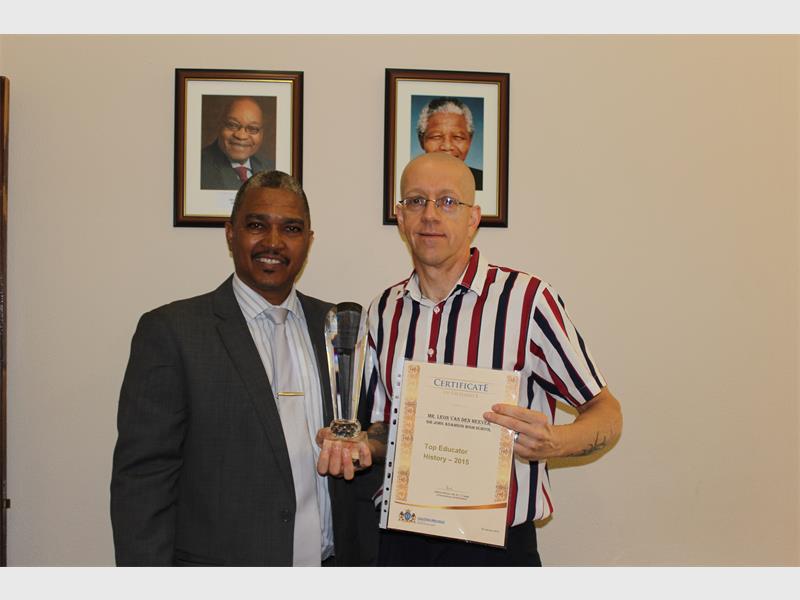 SIR John Adamson High School history teacher Mauritz van der Heevev continues his excellence in the discipline, this time producing pupils who scored 13 distinctions in the subject and becoming the top history teacher in the district.