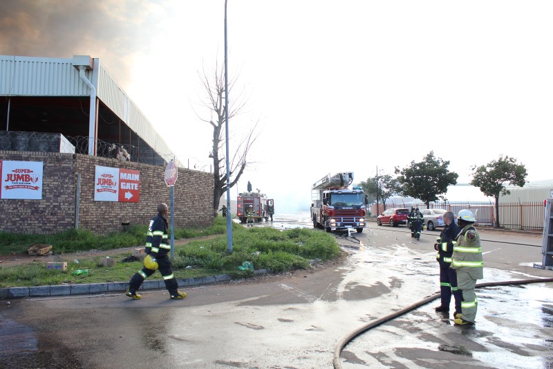 EMS Spokesperson, Robert Mulaudzi said: “At this state we can say that the fire has been contained but we have not determined the cause of the fire as we are still waiting for everything to settle so we could investigate the cause. Fortunately there were no people injured as the warehouse was empty at the time the fire started,”